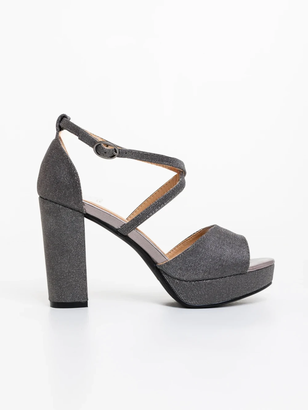 Elinta fekete női magassarkú szandál textil anygaból Termék leírás