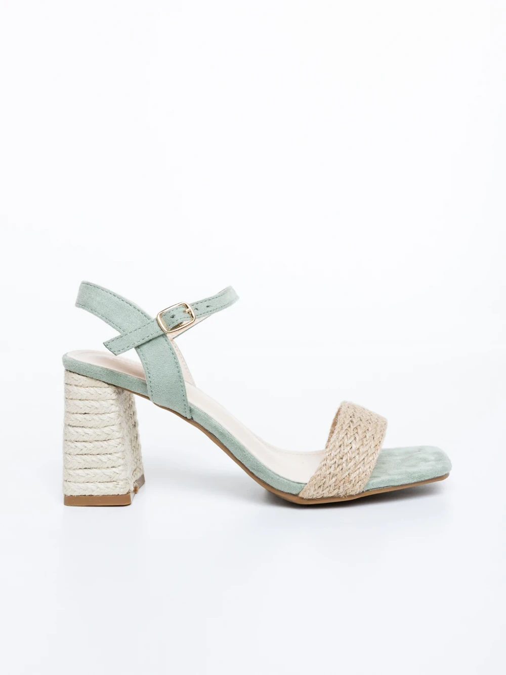 Astaria zöld női magassarkú szandál textil anyagból Termék leírás