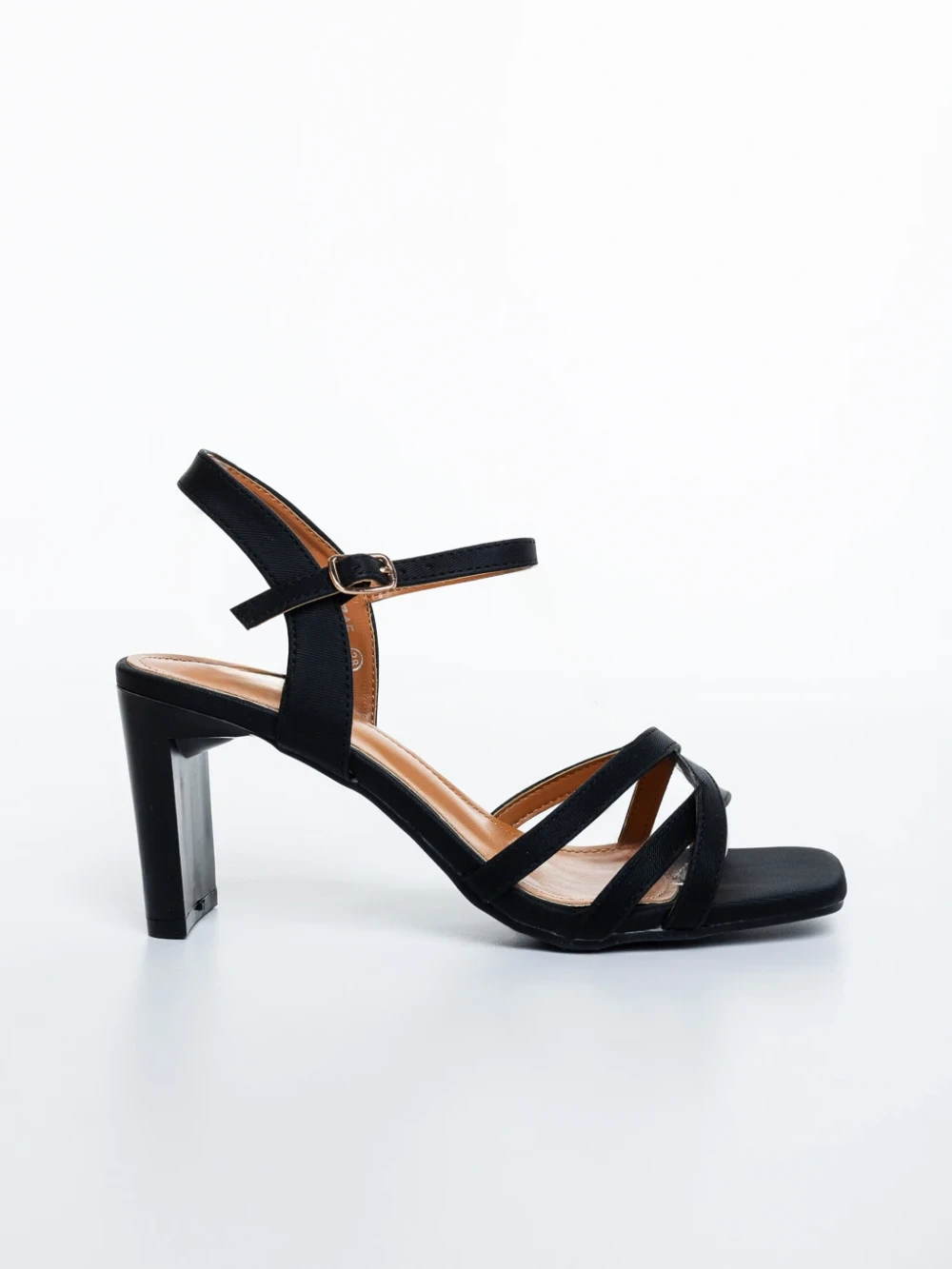 Lavania fekete női magassarkú szandál textil anyagból Termék leírás