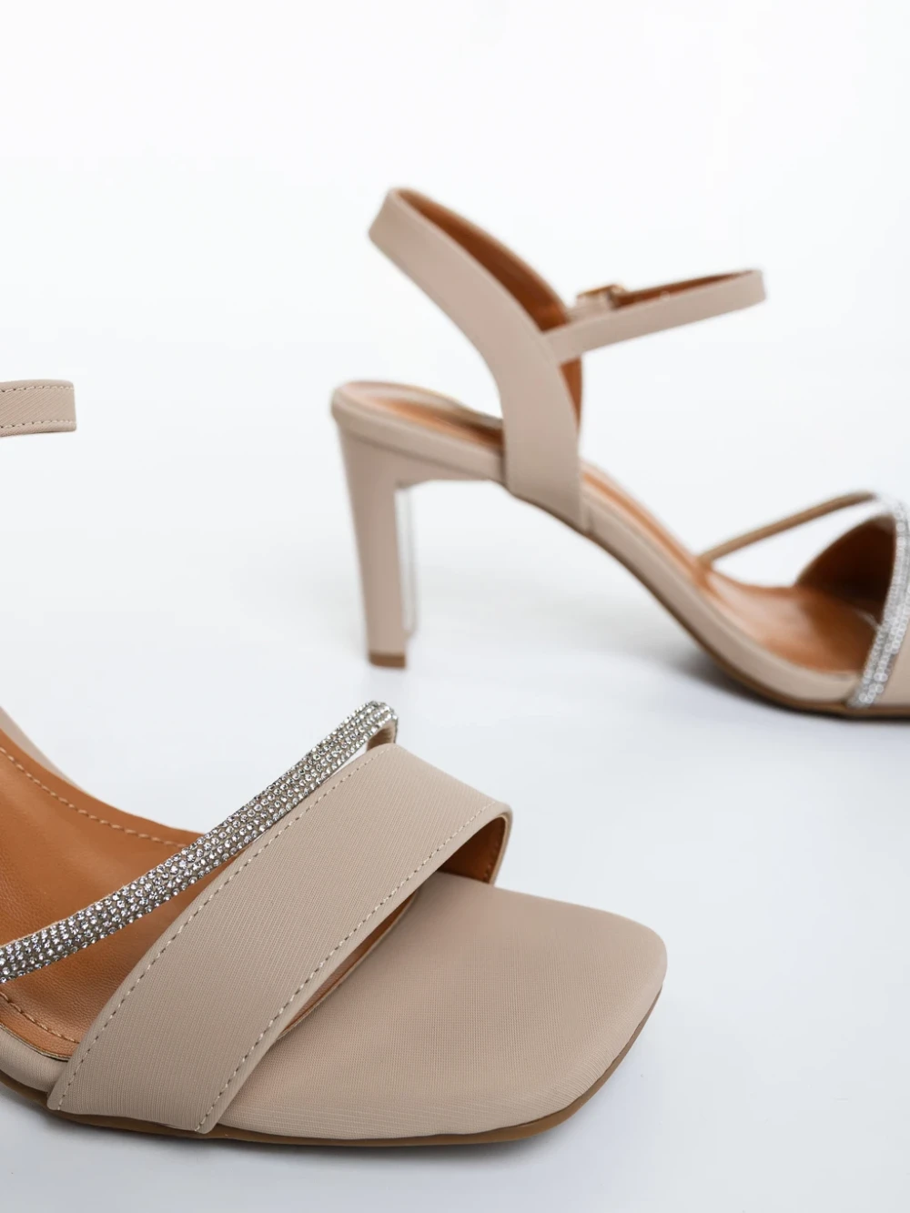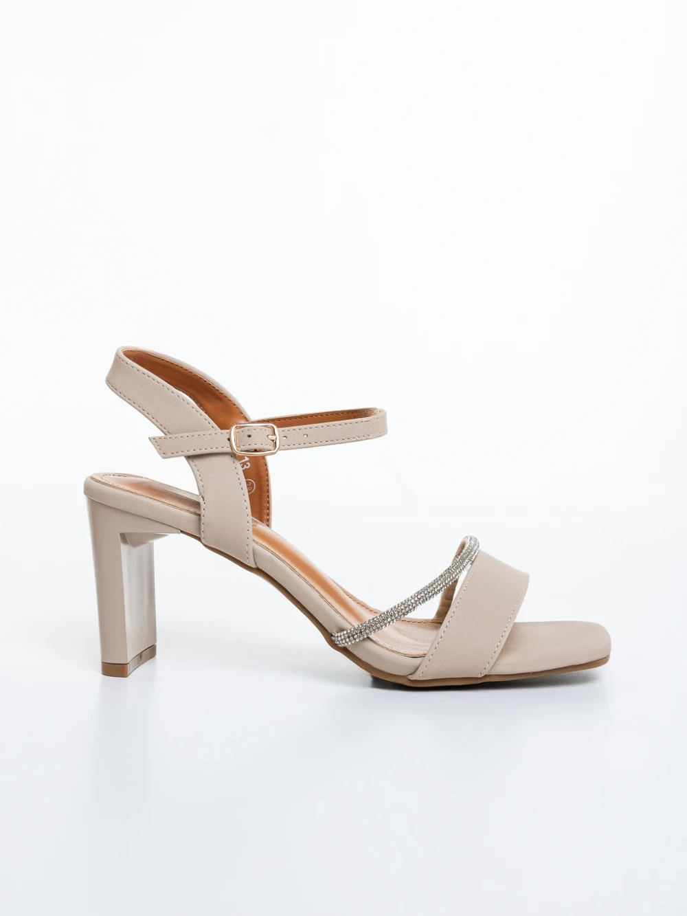 Selesa sötét bézs női magassarkú szandál textil anyagból Termék leírás