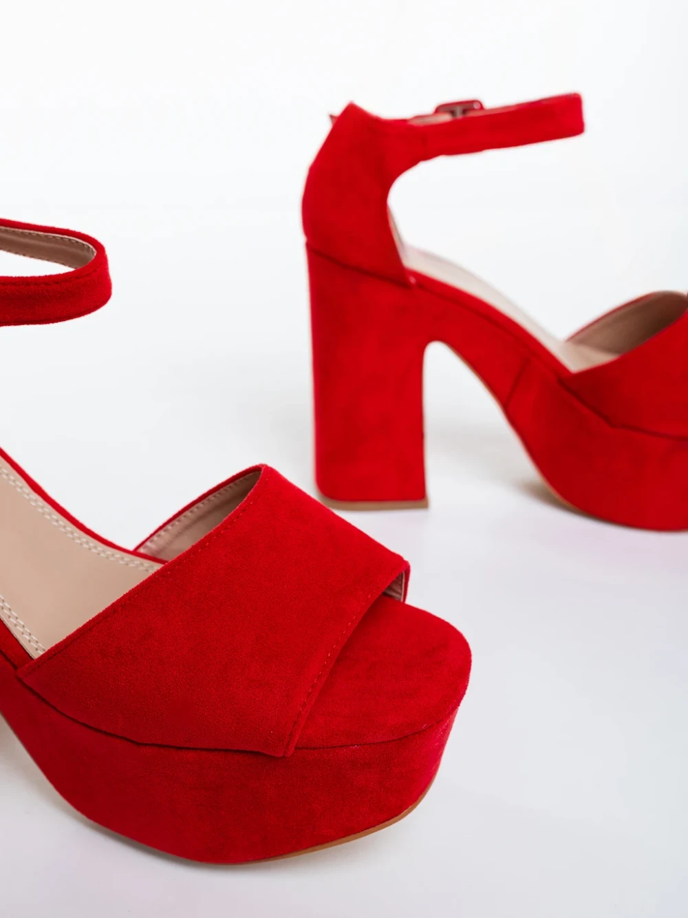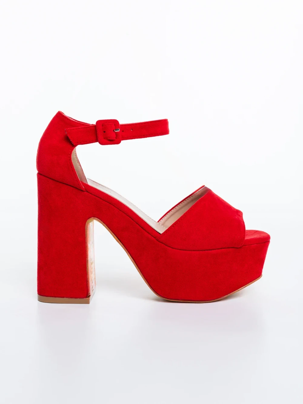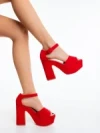 Elenia piros női magassarkú szandál textil anyagból Termék leírás