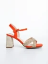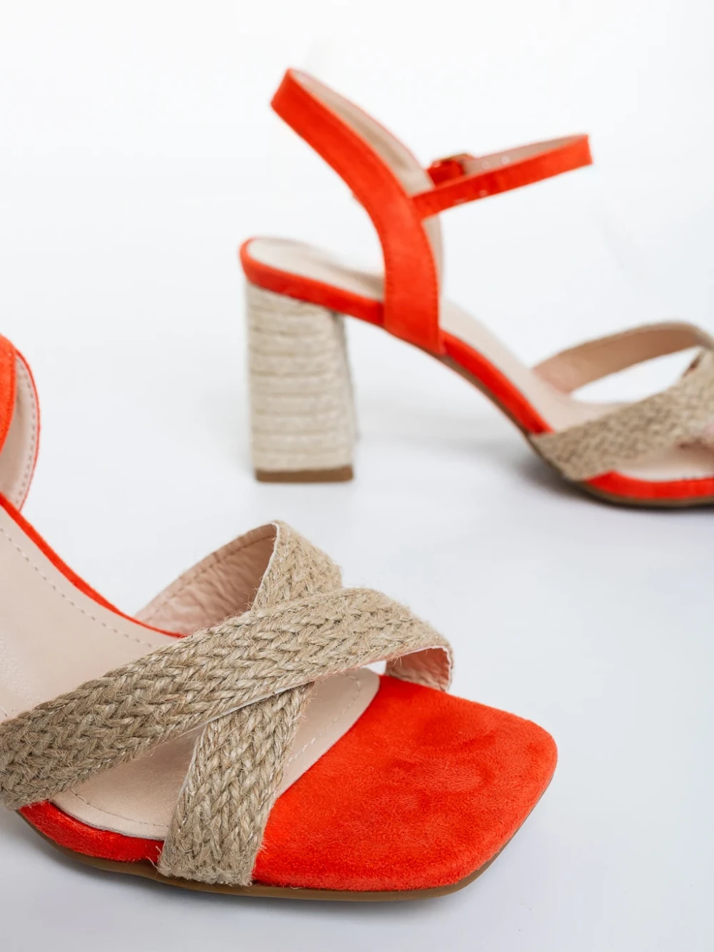 Rosea narancssárga női magassarkú szandál textil anyagból