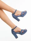 Laduna kék női magassarkú szandál textil anygaból Termék leírás