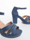 Laduna kék női magassarkú szandál textil anygaból