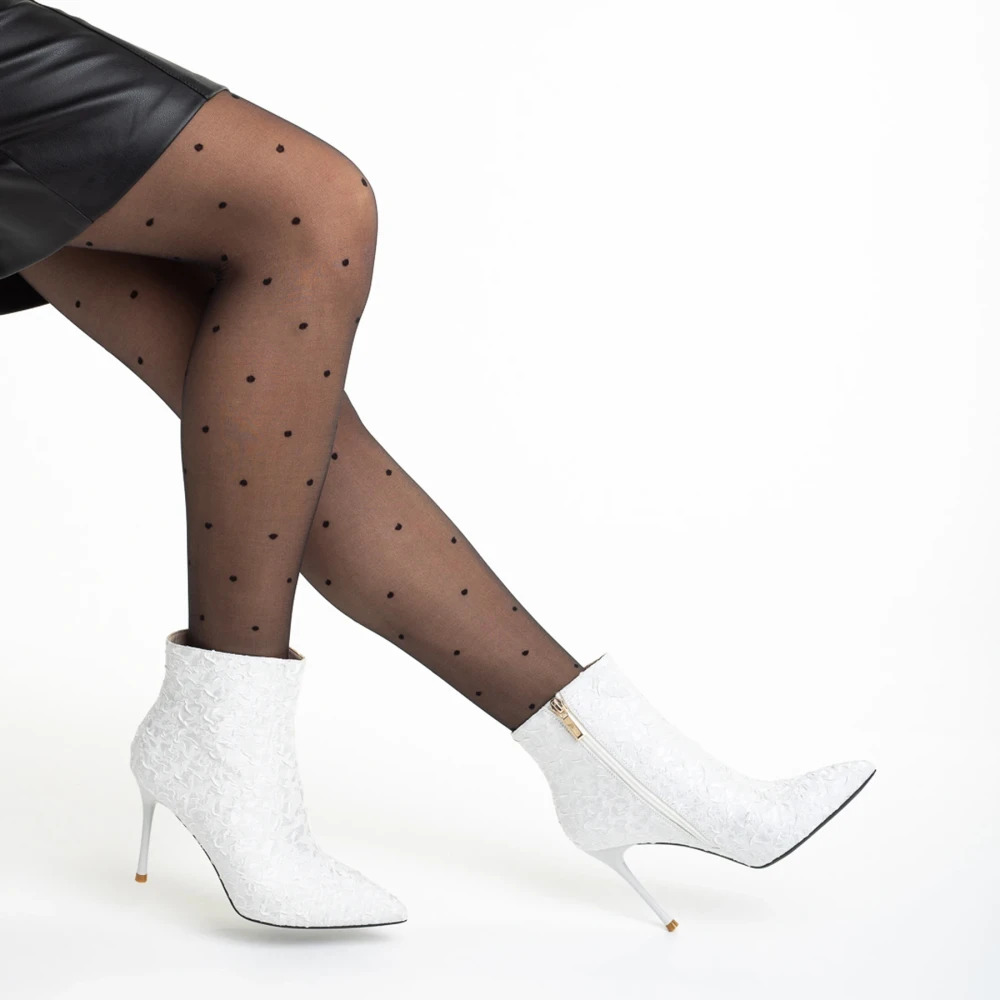 Pearlee fehér női bokacsizma, textil anyagból készült