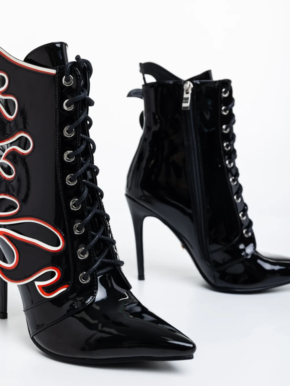 Penda fekete női bokacsizma lakkozott ökológiai bőrből