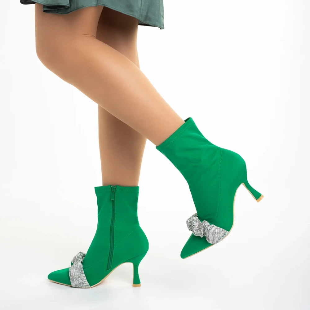 Revonda zöld női bokacsizma, textil anyagból készült
