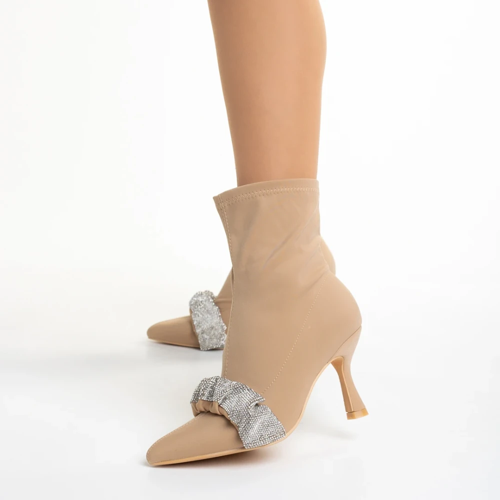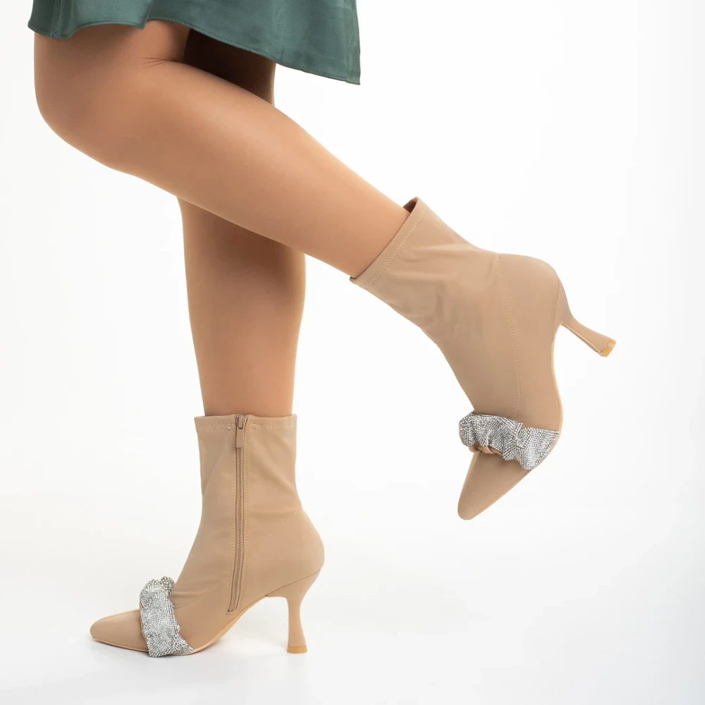 Revonda bézs női bokacsizma, textil anyagból készült Termék leírás