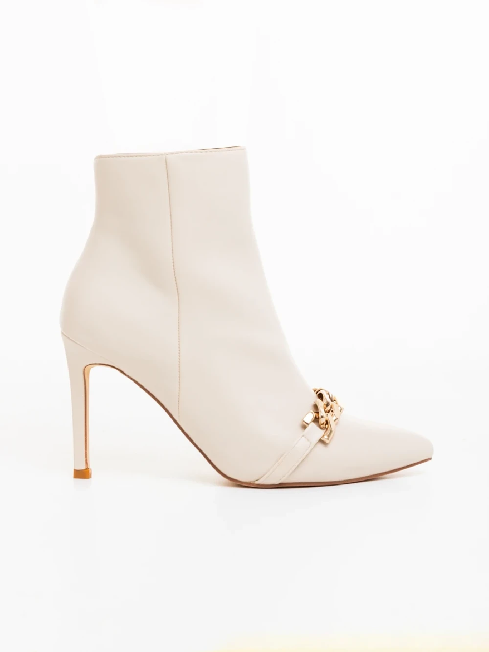 Kilara bézs női magassarkú bokacsizma ökológiai bőrből Termék leírás