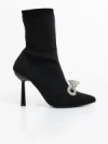 Zemira fekete női magassarkú bokacsizma textil anyagból