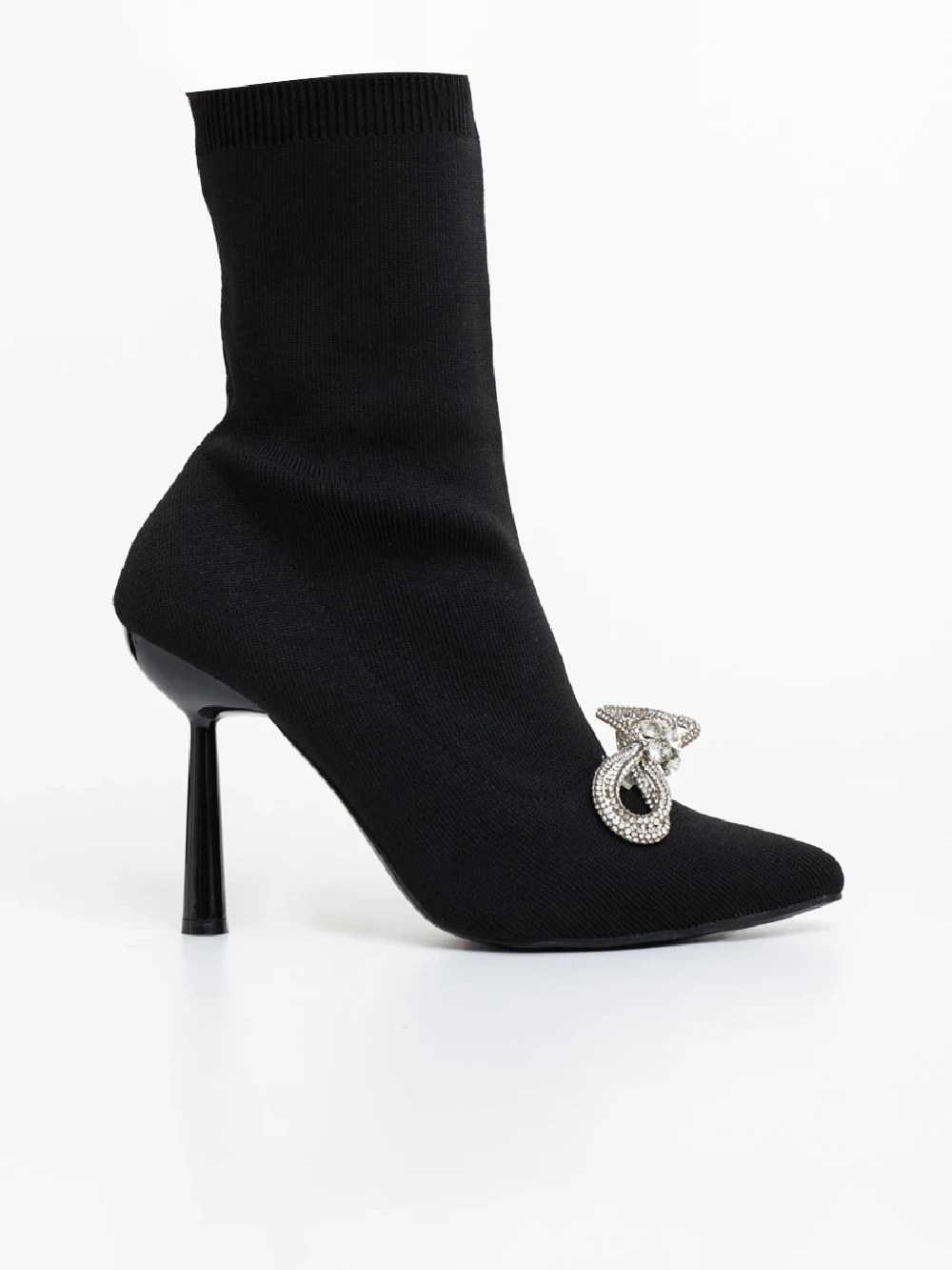 Zemira fekete női magassarkú bokacsizma textil anyagból Termék leírás