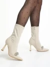 Pamelyn bézs női bokacsizma, textil anyagból készült Termék leírás