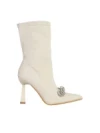 Pamelyn bézs női bokacsizma, textil anyagból készült