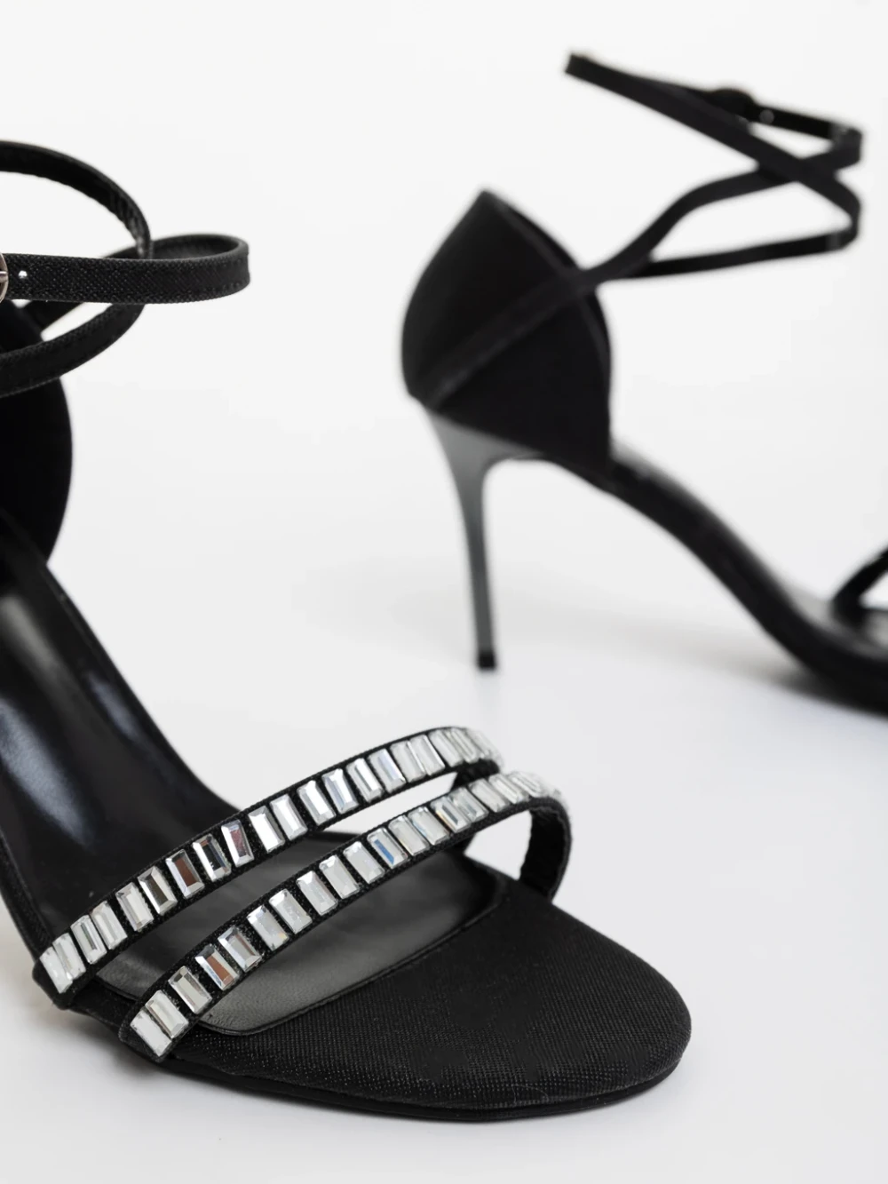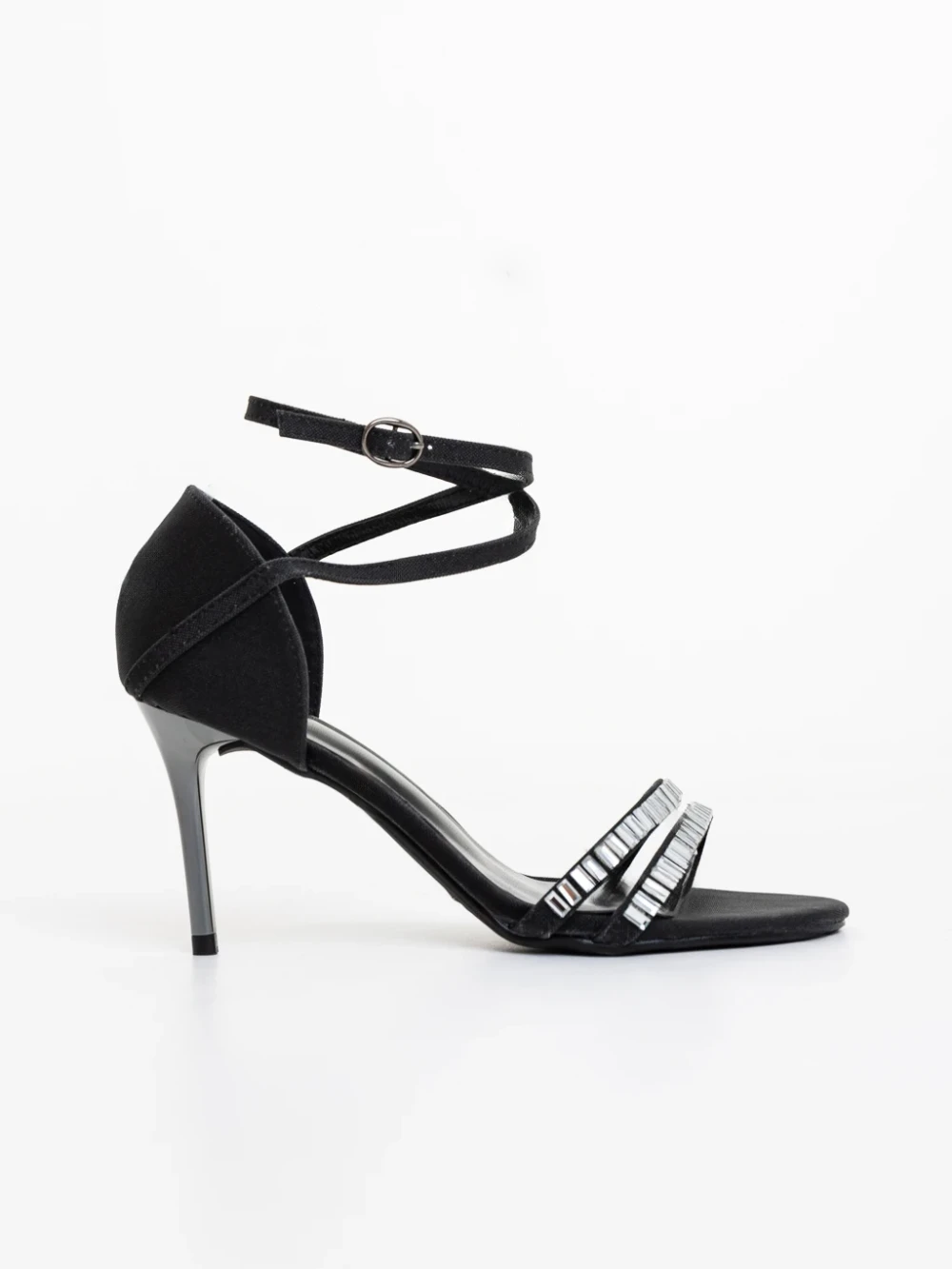 Galina fekete női magassarkú szandál textil anyagból Termék leírás