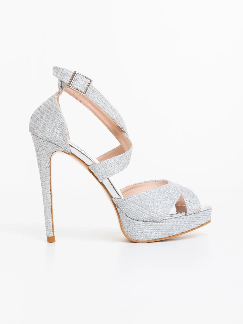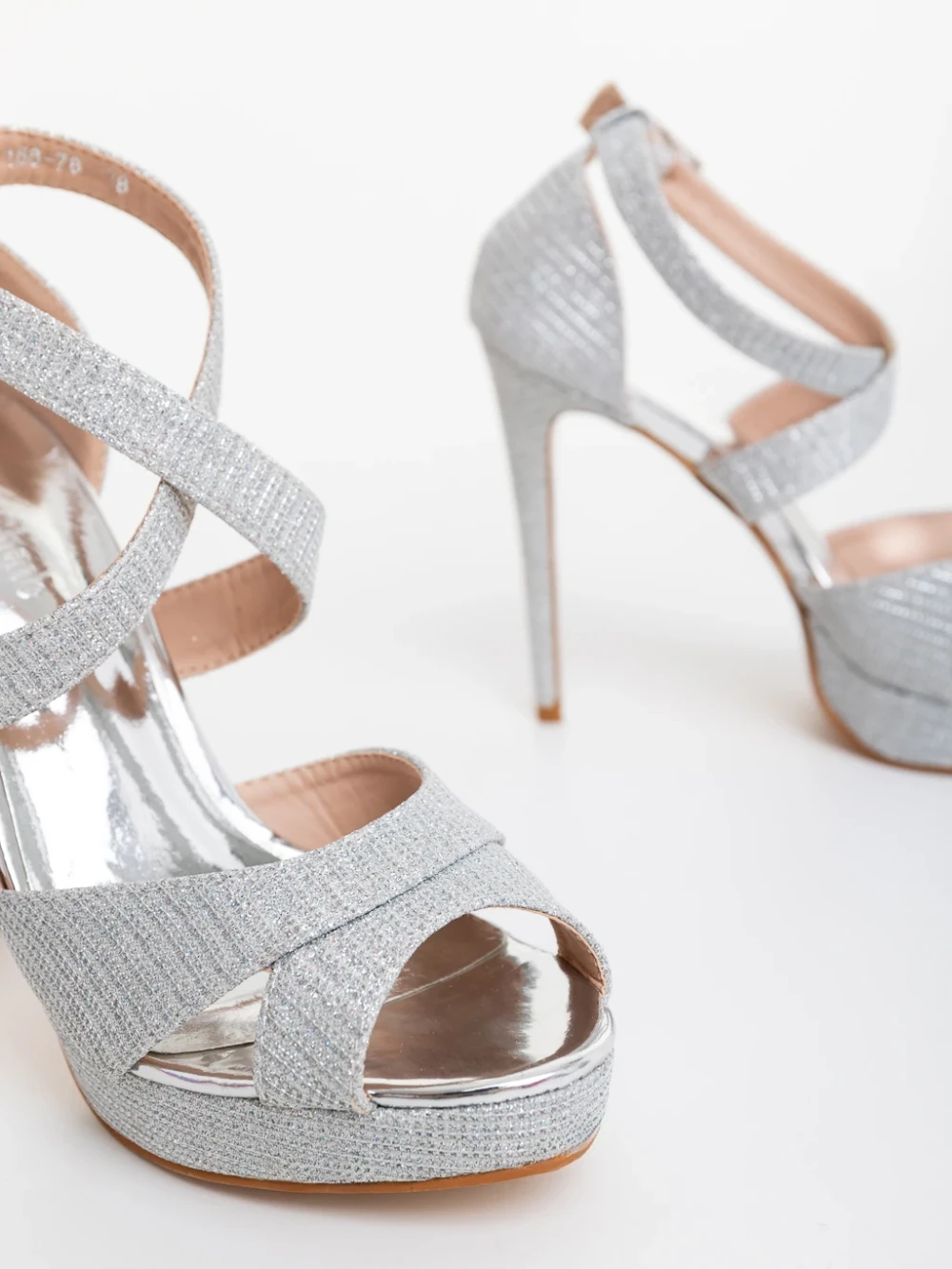 Morita ezüstszinű női magassarkú szandál textil anyagból Termék leírás