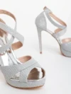 Morita ezüstszinű női magassarkú szandál textil anyagból