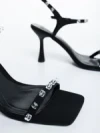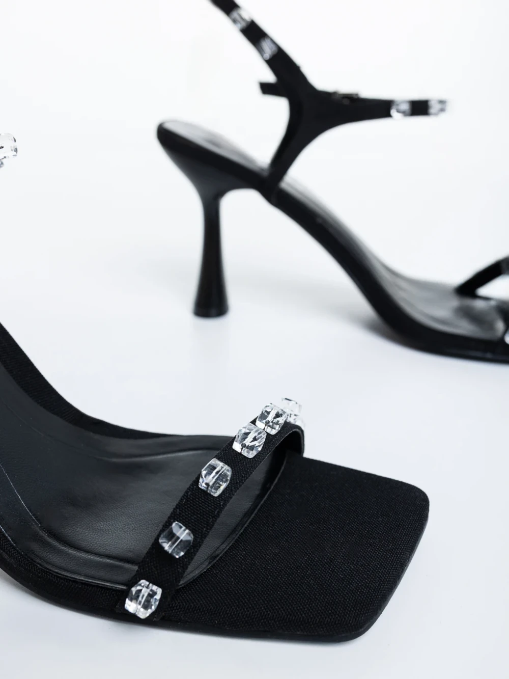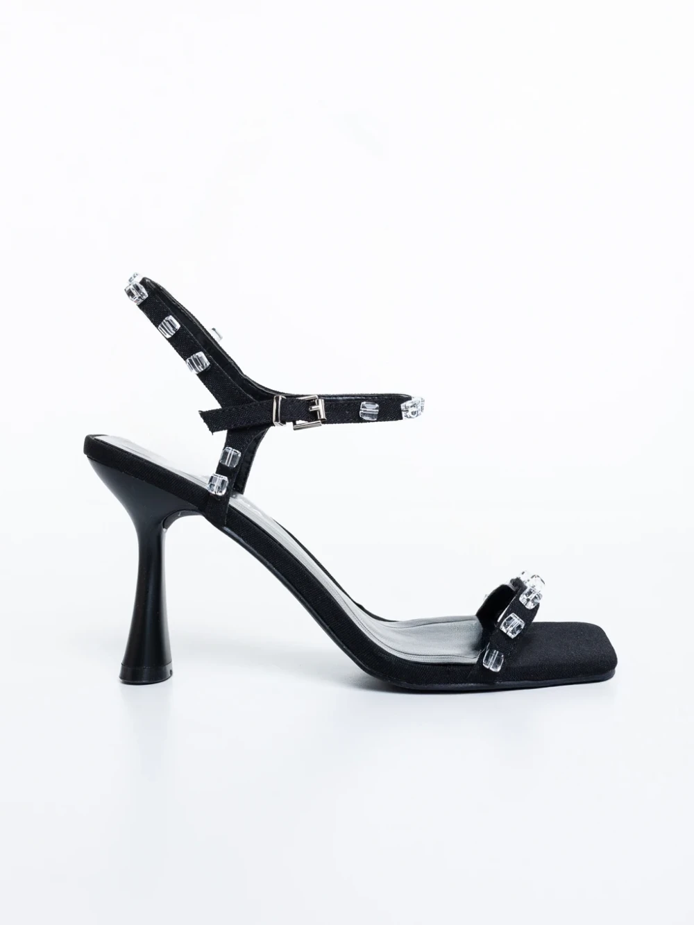 Anzira fekete női magassarkú szandál textil anyagból Termék leírás