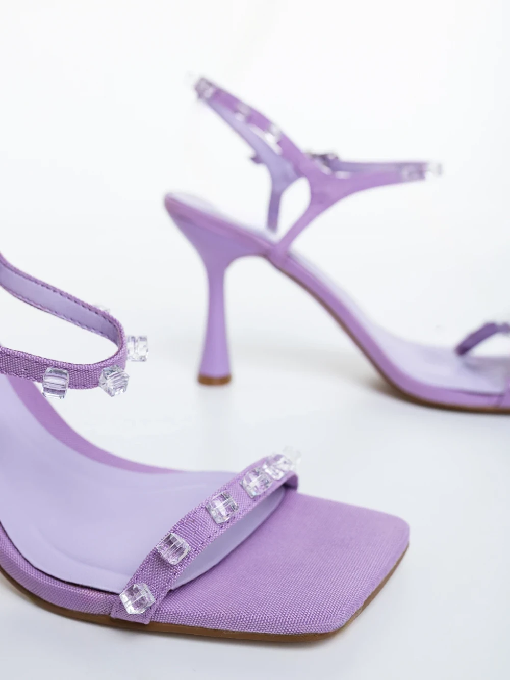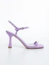 Anzira lila női magassarkú szandál textil anyagból