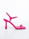 Anzira fukszia női magassarkú szandál textil anyagból Termék leírás